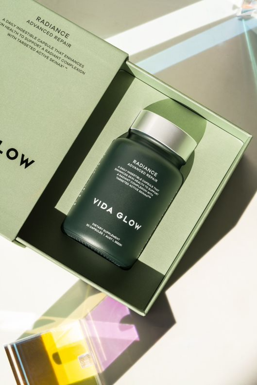 After having three children, pigmentation is one of my primary skin concerns. Brightening my dark spots and protecting my skin is always the goal, and it’s particularly important as we head into summer. How will you reach this goal? I’ve always been committed to a tailored and consistent skincare routine, and I’ve just introduced Vida Glow’s Radiance to my regimen. Radiance is our new skin- brightening capsule, which softens dark marks and improves the appearance of melasma and dark undereye circles. Radiance and its hero ingredient, SkinAx2, have robust clinical evidence. I’m already seeing early changes in my skin’s luminosity and tone.