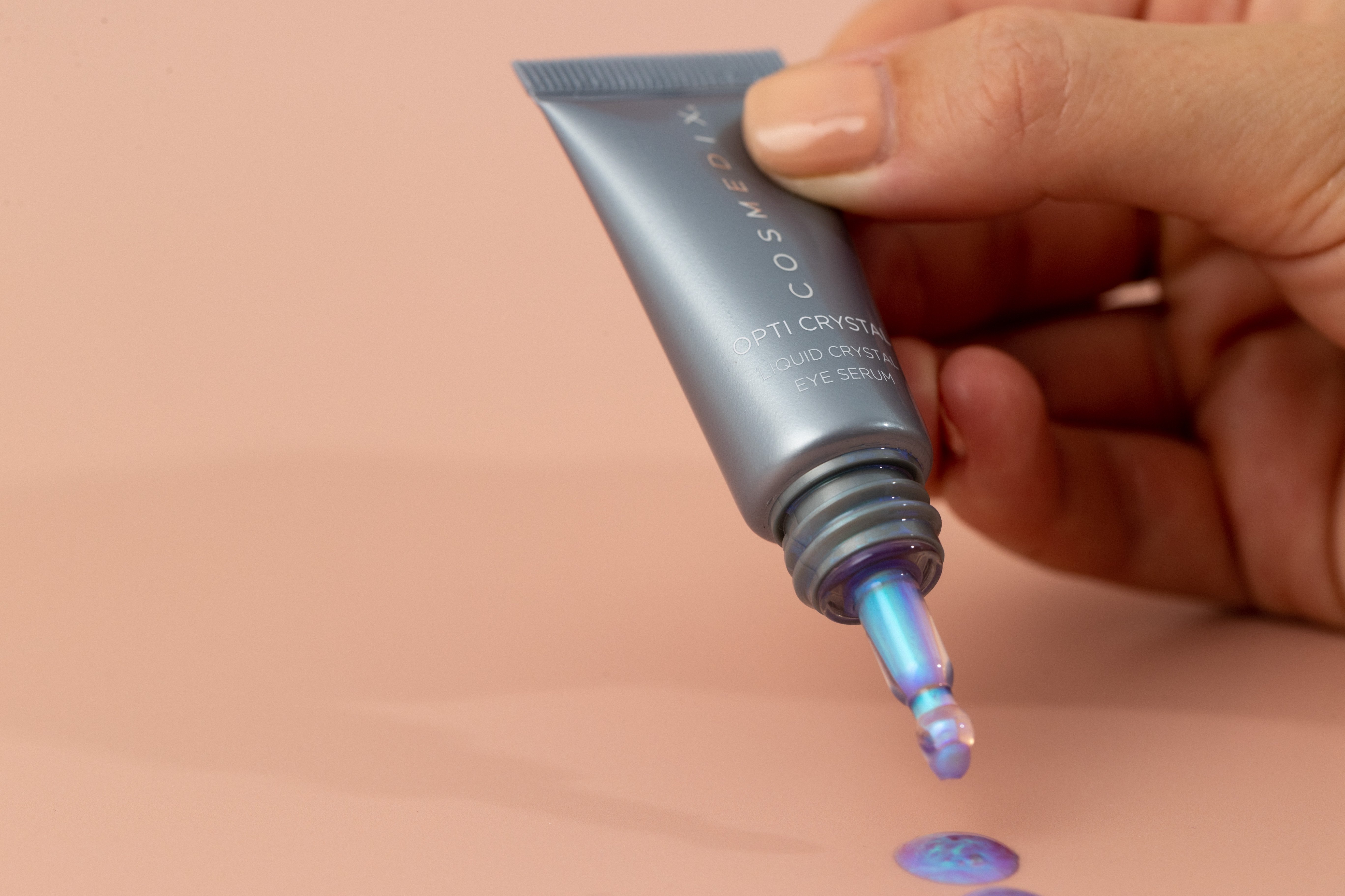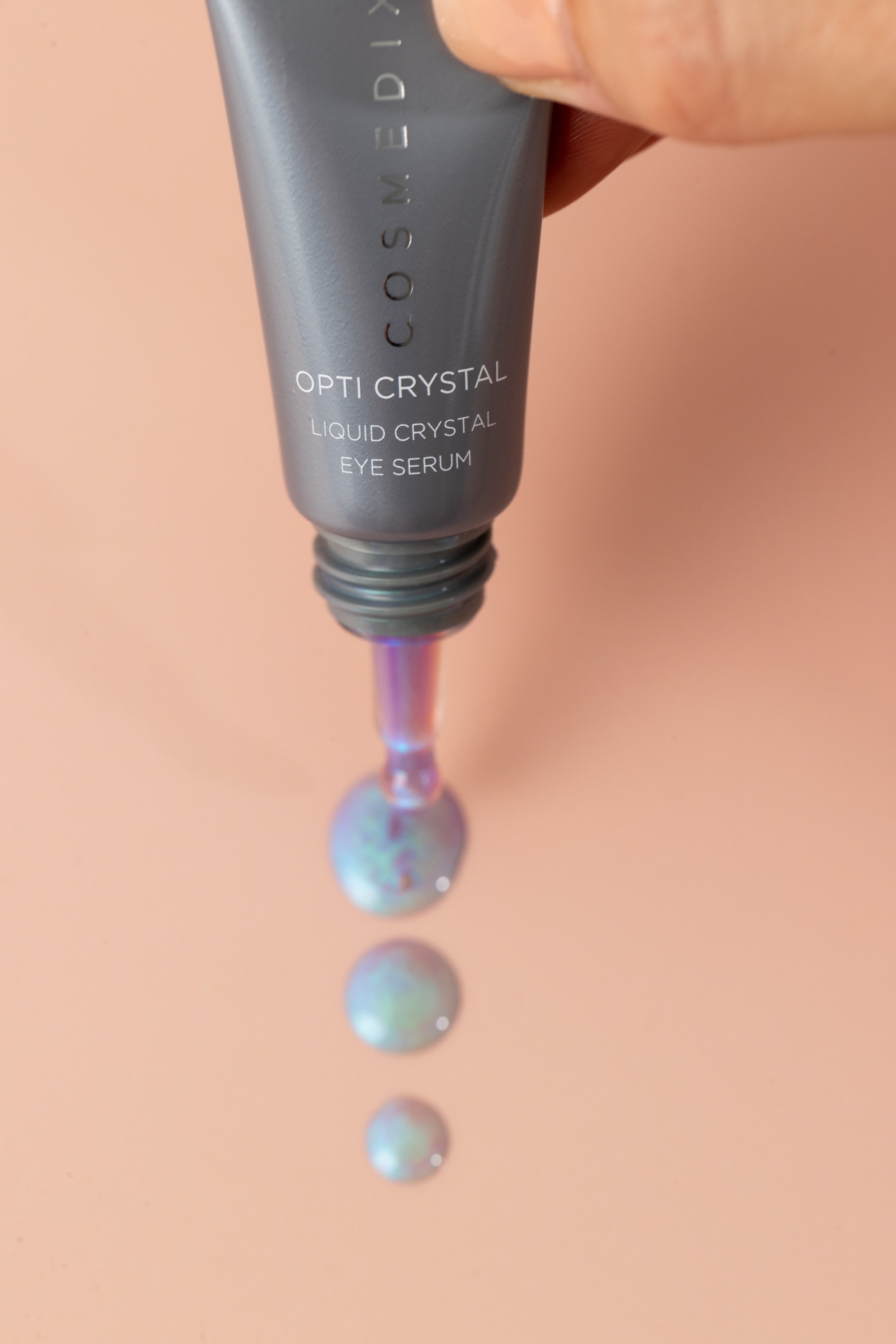 COSMEDIX OPTI CRYSTAL EYE SERUM Pregnancy & breastfeeding safe A blend of liquid crystals and powerful antioxidants provides deep hydration to the eye area while reducing dark circles, fine lines and crows feet. The reflective properties of this luxurious eye serum also help minimise the appearance of dark circles.