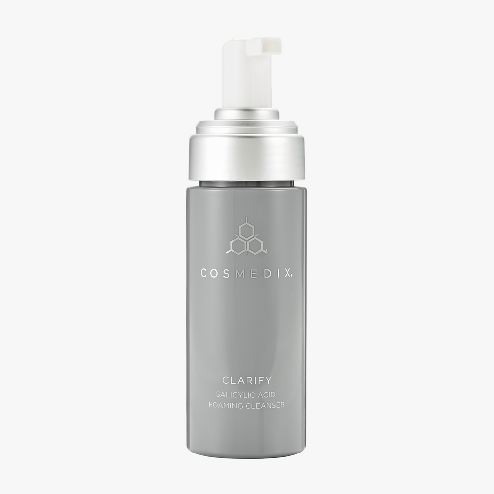 Cosmedix Clarify is a gentle, Alcohol and Sulfate-free Salicylic Acid Foaming Cleanser that reveals a clearer, healthier-looking complexion by gently exfoliating sensitive and blemish-prone skin without stripping it of its natural oils.