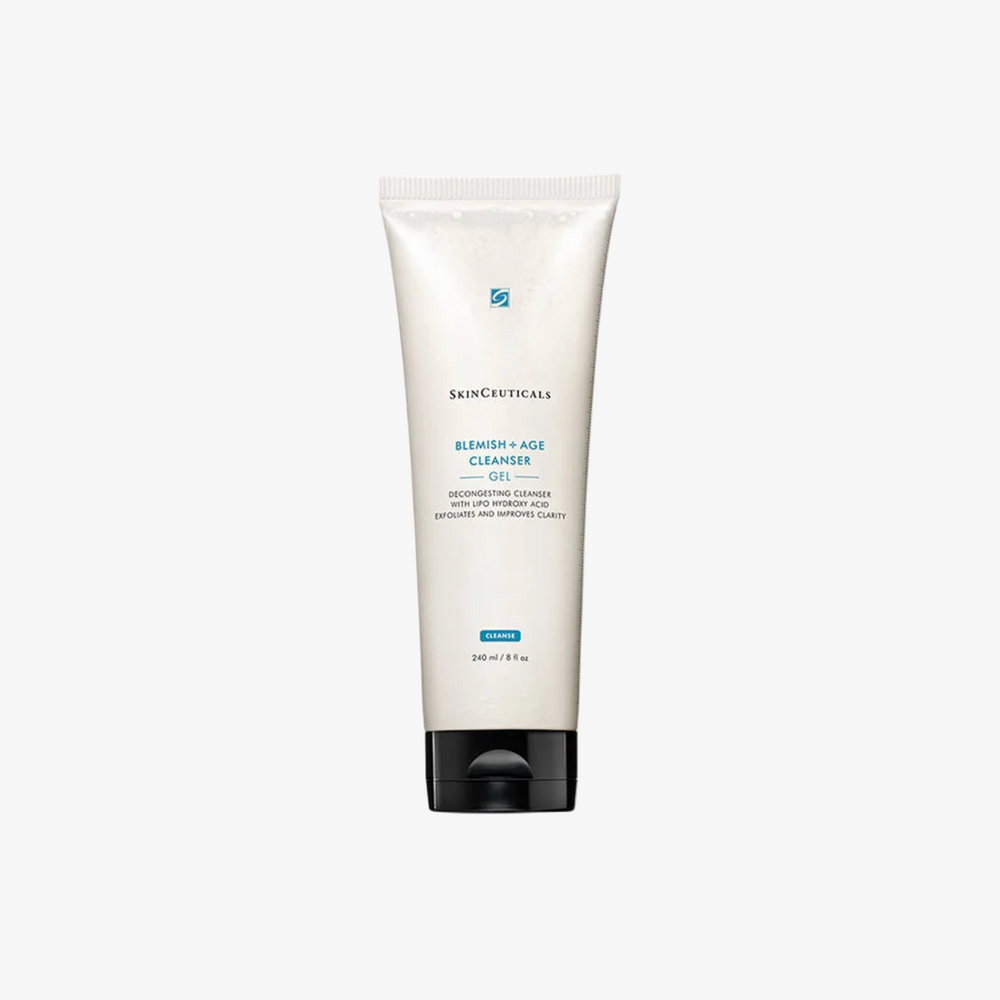 Blemish + Age Cleanser is a high-performance exfoliating gel cleanser formulated with a 12% blend of lipo-hydroxy acid (LHA), glycolic acid, and salicylic acid to remove excess oils, makeup, and impurities. This targeted cleanser helps decongest pores, reduce blemishes, and brighten the skin, while being gentle enough for aging, blemish-prone skin. Hydrating ingredients like glycerin and sorbitol ensure skin remains balanced and moisturised without over-drying.