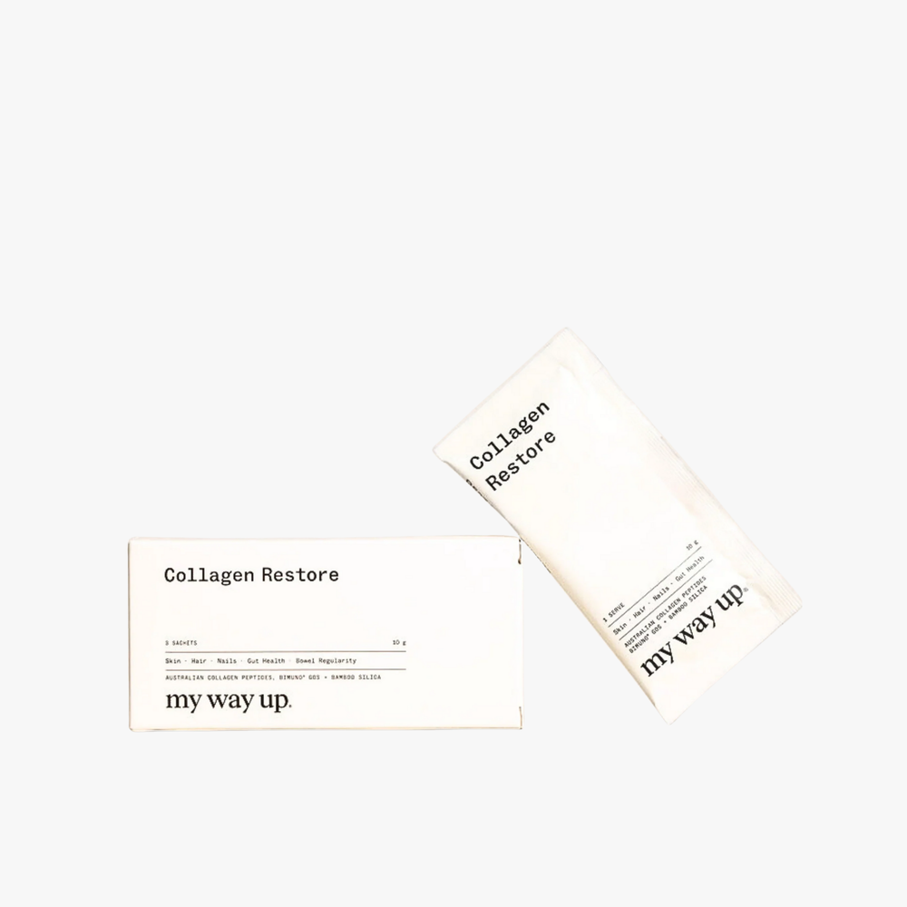 Collagen RestoreTM combines Australian-made collagen peptides with uniquely effective prebiotics that improve skin hydration, wrinkles and elasticity, while benefiting gut health in 7 days.