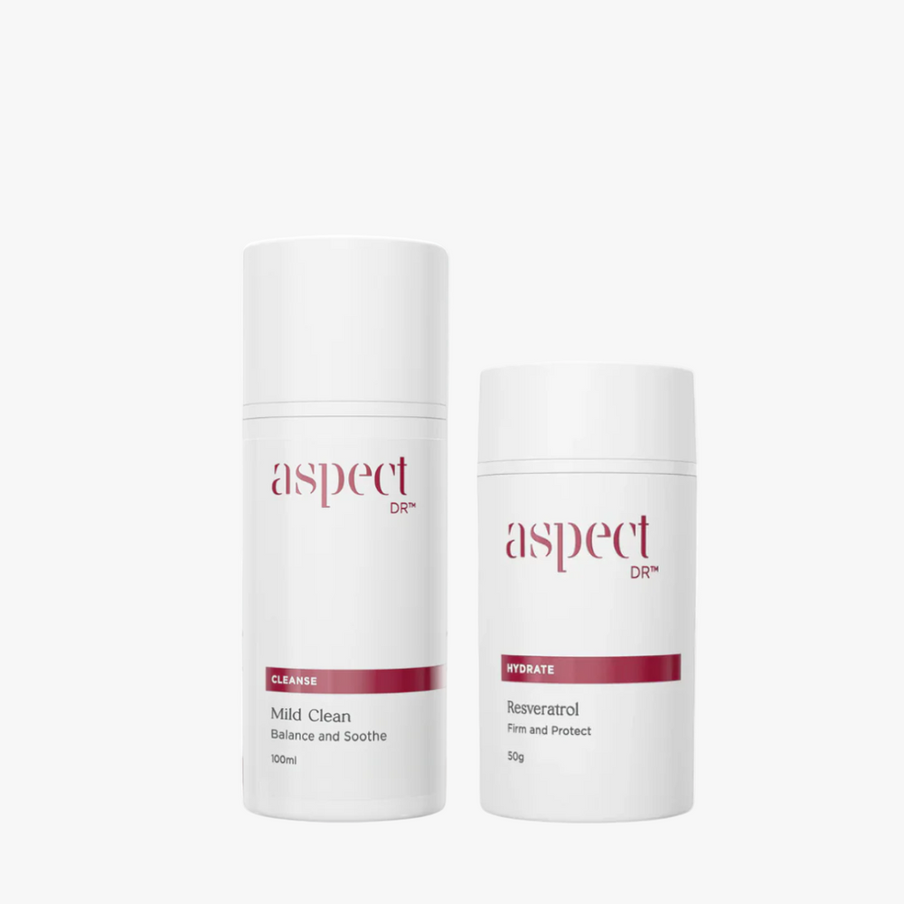 The Aspect Dr Dry Skin Basic Bundle is a powerful combination of high quality recommended products looking to get the basics right tailored for dry skin types. It features their mild clean cleanser to clear away impurities, and Resveratrol moisturising cream containing Grape Skin Extracts and Peptides to nourish the skin and restore moisture content. Packed with Antioxidants, this kit provides the perfect balance of cleansing and nourishment for dry skin.