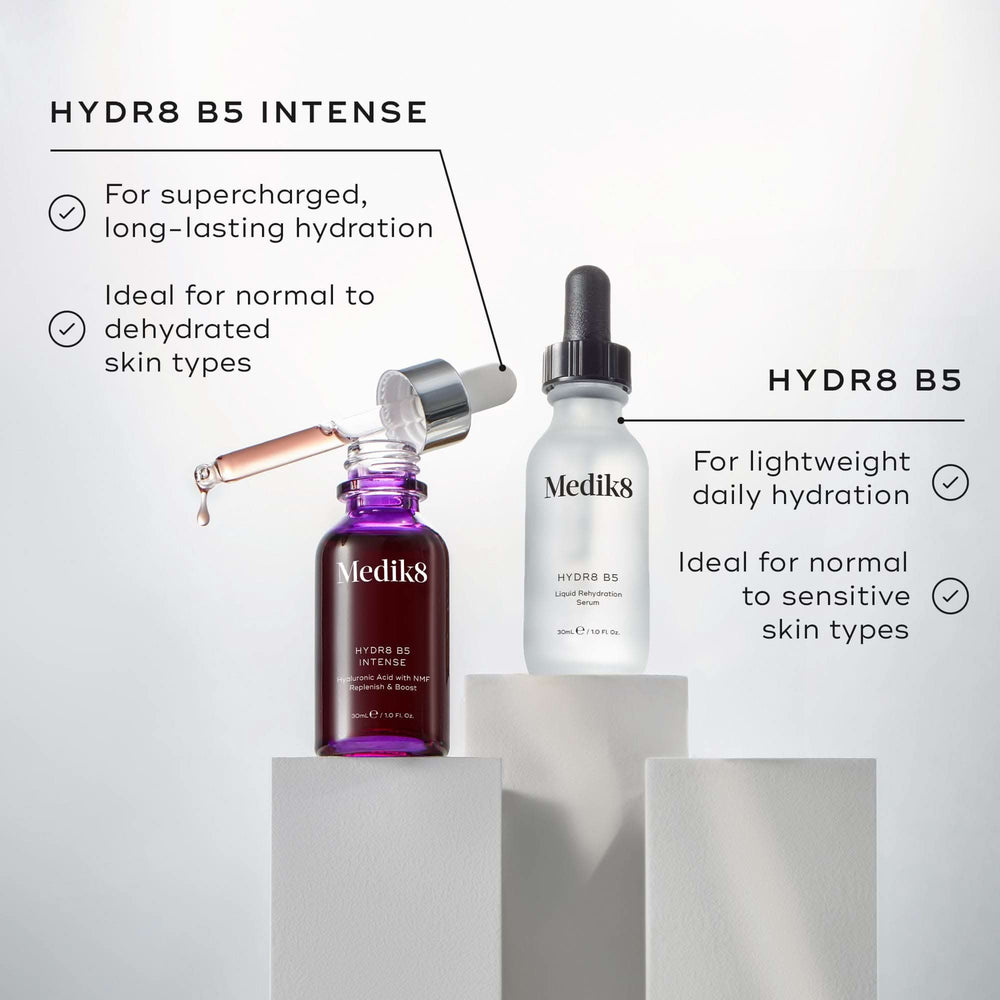 Medki8's original hyaluronic acid serum – supercharged. Harnessing all of the hydration power of their best seller, Hydr8 B5, with added Natural Moisturising Factors alongside a potent triple-action hydration booster which recharges the skin’s internal moisture source.