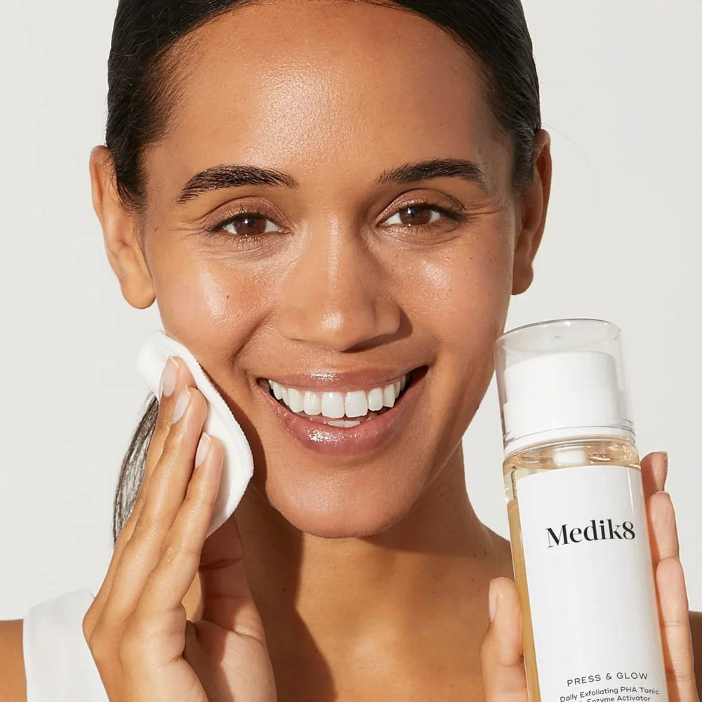 Reveal radiant, refined skin with Press & Glow — Medik8’s next-generation exfoliating acid toner designed to deliver daily glow without compromising the skin barrier.