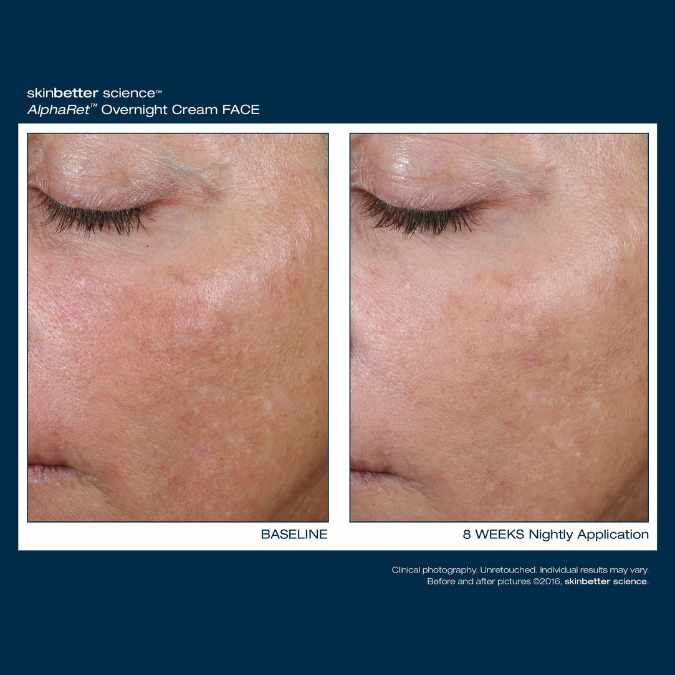 SkinBetter Science AlphaRet Overnight Cream FACE is a one-step nightly retinoid treatment. An advanced formula of Retinol, Glycolic, Lactic Acid, Antioxidants and Peptides to improve the appearance of lines, wrinkles and discolouration. Not safe in pregnancy or breastfeeding