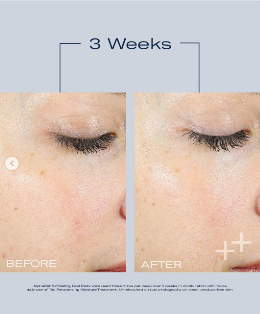 SkinBetter Science AlphaRet Exfoliating Peel Pads are a powerful skin treatment in an easy to use pad. Containing a triple-acid formulation of Lactic Acid, Glycolic Acid and Salicylic Acid, enhanced with the patented AlphaRet technology, these pads will exfoliate and leave your skin feeling fresh and congestion free. This is a medical grade product, call to purchase. Not suitable for pregnancy and breastfeeding.